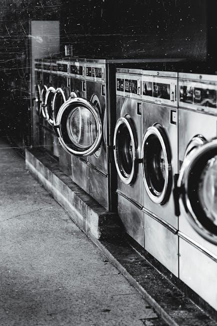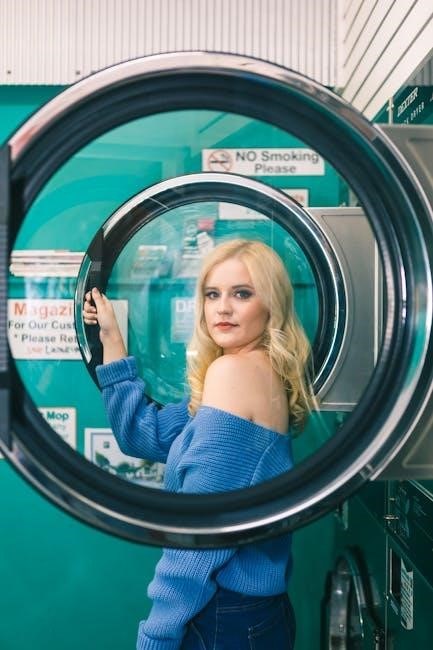 Common washer issues include the machine not starting‚ poor cleaning performance‚ or excessive noise. If the washer won’t start‚ check power supply and ensure the lid is closed properly. For poor cleaning‚ verify detergent dosage and water temperature settings. Excessive noise may indicate unbalanced load or foreign objects in the drum. Regularly cleaning the filter and checking for blockages can prevent issues. Refer to the manual for troubleshooting steps or reset the machine if necessary. Addressing these problems promptly ensures optimal performance and extends the appliance’s lifespan.