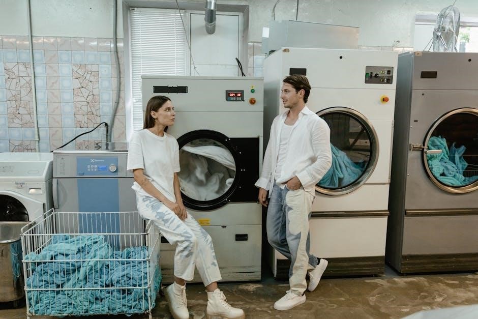 Regular maintenance ensures optimal performance. Clean the washer and dryer drums‚ check for blockages‚ and ensure proper ventilation. Refer to the manual for detailed care instructions.
